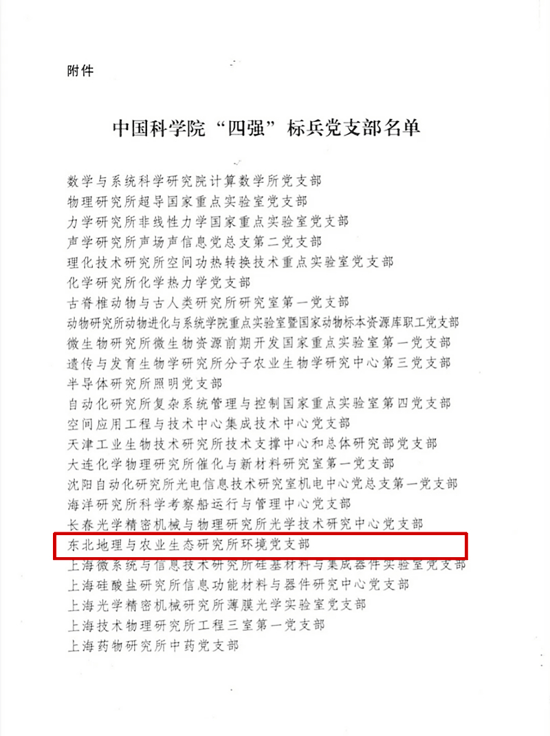 為加強(qiáng)基層黨組織建設(shè),充分發(fā)揮基層黨組織的戰(zhàn)斗堡壘作用和黨員的先鋒模范作用,6月30日上午,在中國科學(xué)院慶祝建黨101周年表彰交流會(huì)上,院黨的建設(shè)工作領(lǐng)導(dǎo)小組授予50個(gè)黨支部中國科學(xué)院“四強(qiáng)”標(biāo)兵黨支部稱號(hào)。本所環(huán)境黨支部榮獲此稱號(hào)。