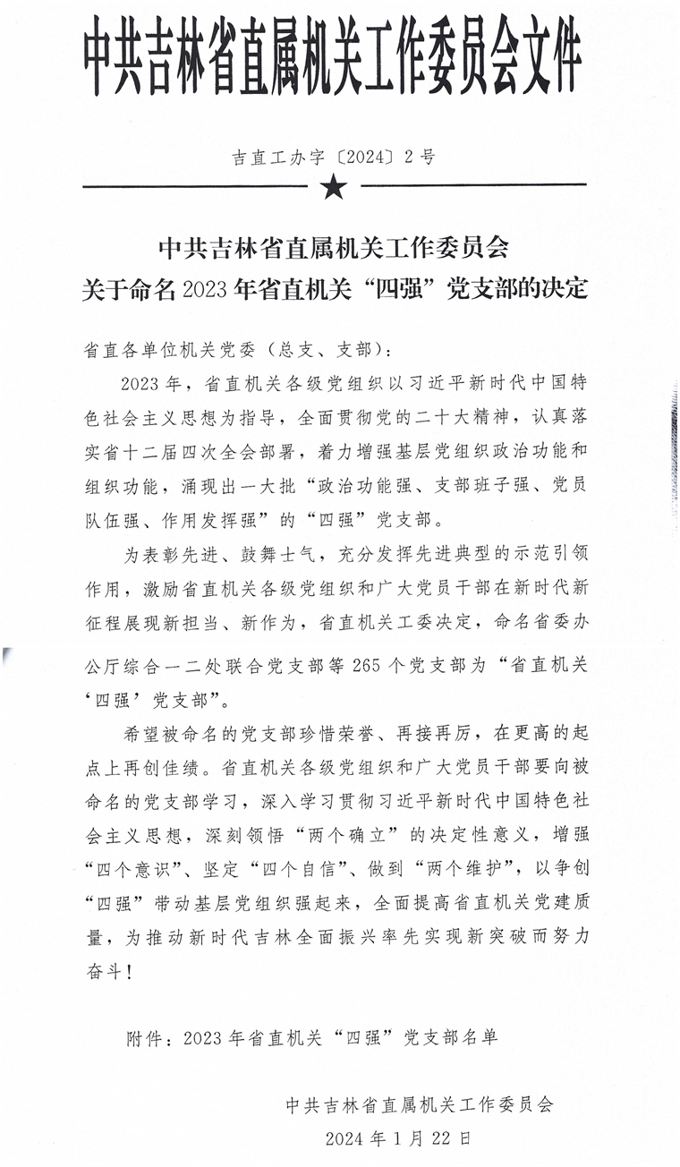 吉林省直機關(guān)工委為表彰先進(jìn)、鼓舞士氣,充分發(fā)揮先進(jìn)典型的示范引領(lǐng)作用,激勵省直機關(guān)各級黨組織和廣大黨員干部在新時代新征程展現(xiàn)新?lián)?dāng)、新作為,共命名265個黨支部為“省直機關(guān)‘四強’黨支部”,東北地理所大豆第一黨支部位列其中。