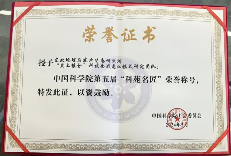 2024年5月17日,中國科學院第五屆“科苑名匠”發布活動在京舉行,我所“黑土糧倉”科技會戰龍江模式研究團隊喜獲中國科學院第五屆“科苑名匠”稱號。