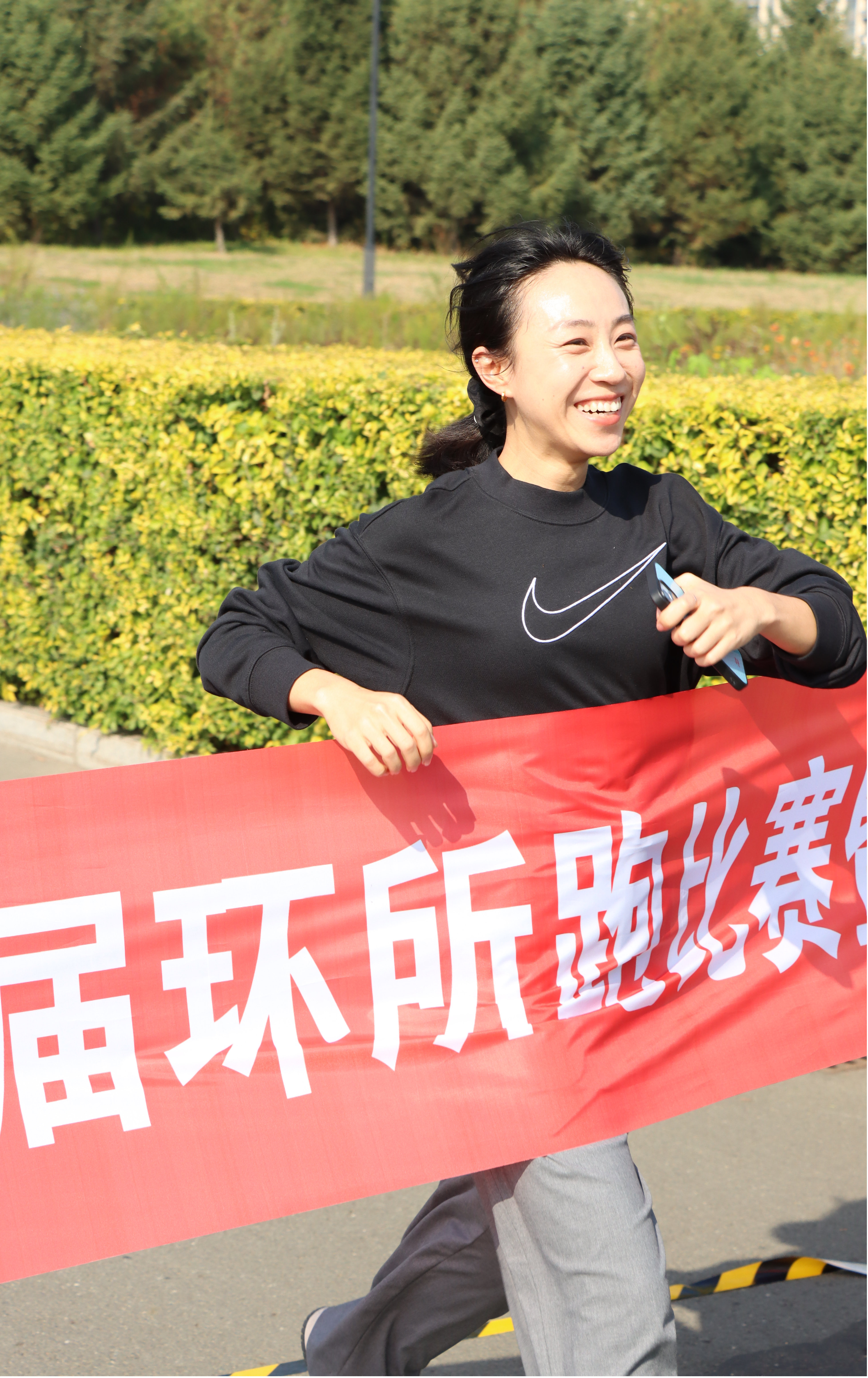 開幕式后,第二十屆環(huán)所跑活動(dòng)開賽,工會(huì)副主席毛之夏宣布活動(dòng)規(guī)則。為了讓參賽選手得到充分熱身,活動(dòng)前策劃了尋寶游戲環(huán)節(jié)。哨聲令下,選手們奔向指定藏寶區(qū)域,開啟尋寶之旅。尋寶游戲結(jié)束后,環(huán)所跑比賽正式開始,祝惠發(fā)令開賽,各組別參賽隊(duì)員先后沖出起跑線,在吶喊和歡呼聲中奮力奔跑。參賽選手沿途經(jīng)過(guò)食堂、黑土生態(tài)艙、種質(zhì)樓等路段,腳下是奔跑的激情節(jié)奏,眼前是研究所的秋日盛景,兩種美好在此刻交融。本所職工與研究生步履鏗鏘,在躍動(dòng)的歡樂(lè)中盡顯勇于拼搏、挑戰(zhàn)自我的時(shí)代風(fēng)貌,生動(dòng)展現(xiàn)了本所創(chuàng)新文化建設(shè)的蓬勃生機(jī)。