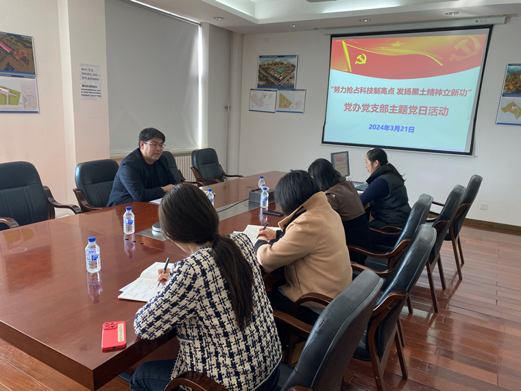 3月21日,黨辦黨支部在綜合樓522會議室組織開展“努力搶占科技制高點 發揚黑土精神立新功”主題黨日活動,活動由支部書記李穎主持。