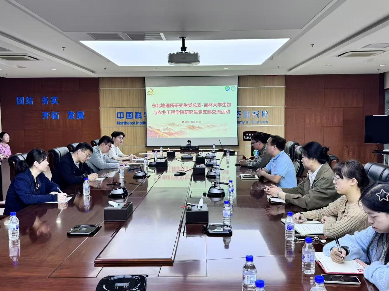 苑春宇首先對(duì)楊民一行表示熱烈歡迎,并介紹了東北地理所的歷史沿革、發(fā)展成果、教育工作與學(xué)生支部建設(shè)等情況,分享了黨團(tuán)班一體化建設(shè)和支部管理的相關(guān)經(jīng)驗(yàn),并回顧了雙方良好的合作經(jīng)歷。楊民對(duì)吉林大學(xué)生物與農(nóng)業(yè)工程學(xué)院的歷史沿革、發(fā)展成果、專業(yè)設(shè)置等情況做了介紹。