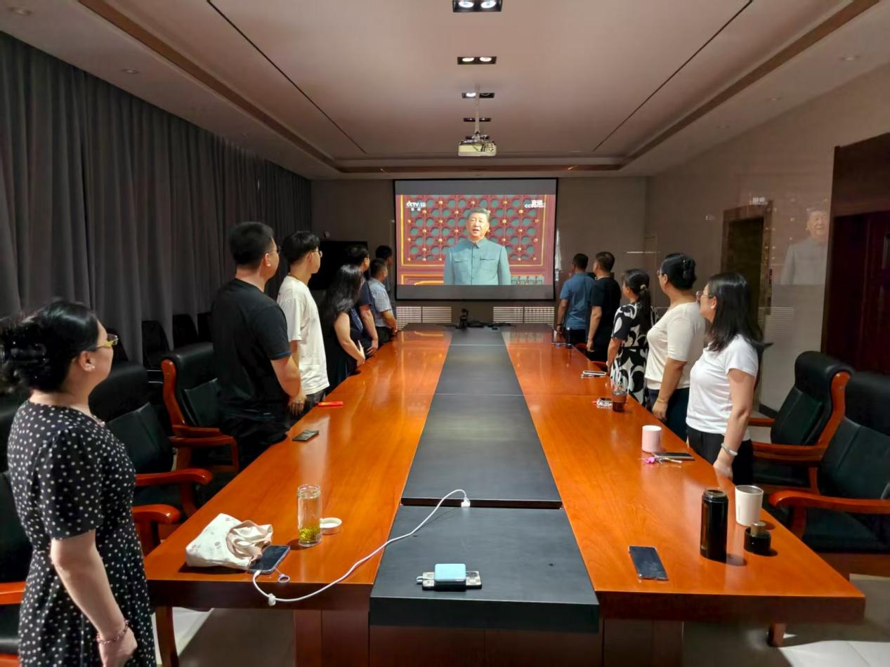 當莊嚴的國歌奏響,五星紅旗冉冉升起,支部所有黨員自行起立行注目禮、唱國歌。閱兵儀式中人民解放軍帽檐下堅毅的目光、鏗鏘有力的步伐,體現著中國軍人對黨和人民的絕對忠誠,時刻守護著我們的和平生活;先進的武器裝置,印證了祖國的強大。“聽黨指揮,能打勝仗,作風優良,紀律嚴明”,久久的回蕩在全體黨員的心中。