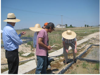 6月2日至3日,專家們先后到吉林省西部土地整理項目所在區域的鎮賚、大安等鹽堿地典型區進行了實地考察。專家們每到一處,即深入田間,詳細考察土壤鹽堿化程度、植被狀況,灌溉排水渠系等,并對鹽堿土改良提出了具體指導性建議。在大安堿地生態試驗站,專家們詳細考察了正在實施的田間試驗和監測設施,并與在站工作的20余名研究人員和研究生進行了學術交流。專家們一致表示愿意與我所就鹽堿土改良和灌溉排水管理開展實質性合作,在初步形成的“中國松嫩平原蘇打鹽堿土改良與灌排管理”項目建議書基礎上,爭取更多國際鹽堿土專家參與,積極推進國際立項。