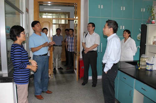 施爾畏副院長一行重點考察了中科院“黑土區農業生態重點實驗室”和“大豆分子設計育種重點實驗室”。在“黑土區農業生態重點實驗室”,王光華研究員、張興義研究員、李祿軍副研究員分別匯報了土壤有機碳及其穩定性、土壤溫室氣體排放、土壤固碳速率與潛力,黑土農田有益微生物的挖掘利用、生防制劑的研制、生物炭加工利用、微生物群落結構與生態功能,黑土地力提升的潛力、途徑和關鍵技術研發等方面的工作進展情況。在“大豆分子設計育種重點實驗室”,劉寶輝研究員、夏正俊研究員分別匯報了重點培育方向“大豆重要性狀形成的分子遺傳基礎與分子育種”的相關工作——大豆突變體庫的建立、新基因的克隆以及關鍵基因育種價值驗證,大豆中控制開花的重要功能基因E1的克隆。