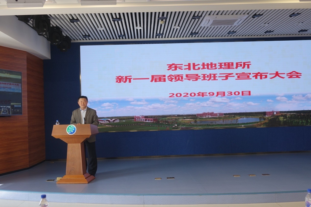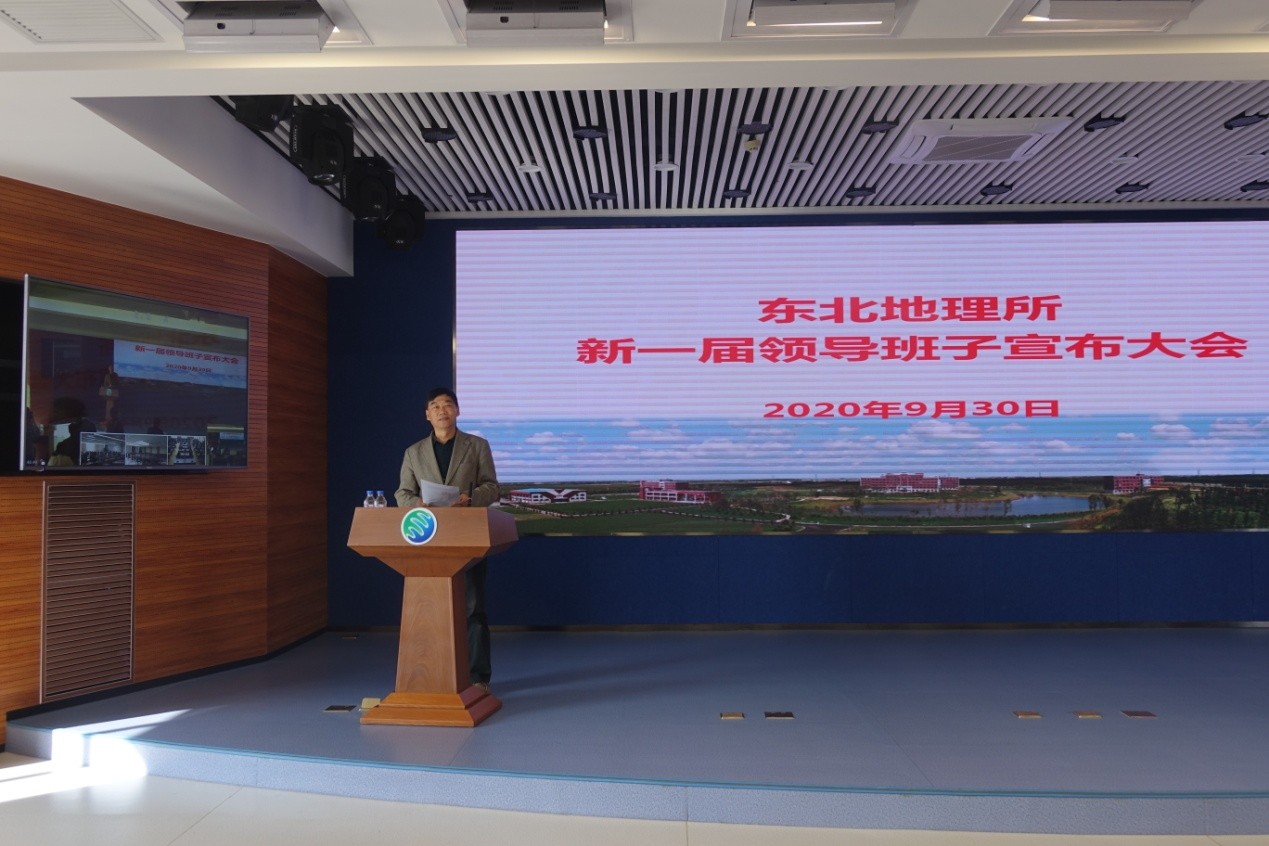 2020年9月30日,中國科學院東北地理與農業生態研究所召開了新一屆領導班子宣布大會。中國科學院長春分院分黨組書記、副院長馬七軍,院長甘建國,副院長劉曉冰,組織人事處處長彥飛,東北地理所領導班子成員、院士、黨委委員、紀委委員、管理部門正副職、實驗室(中心)正副主任、黨支部(黨總支)書記、正高級專業技術人員、副高級專業技術人員、管理部門全體人員、工會代表、離退休職工代表、研究生代表等170余人參加本次會議。會議由馬七軍主持。