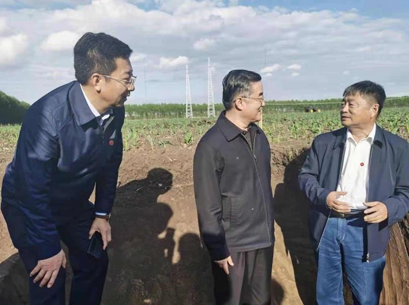 韓曉增和中科院科發(fā)局副局長(zhǎng)孫命、農(nóng)業(yè)農(nóng)村部農(nóng)田司副司長(zhǎng)陳章全一起考察