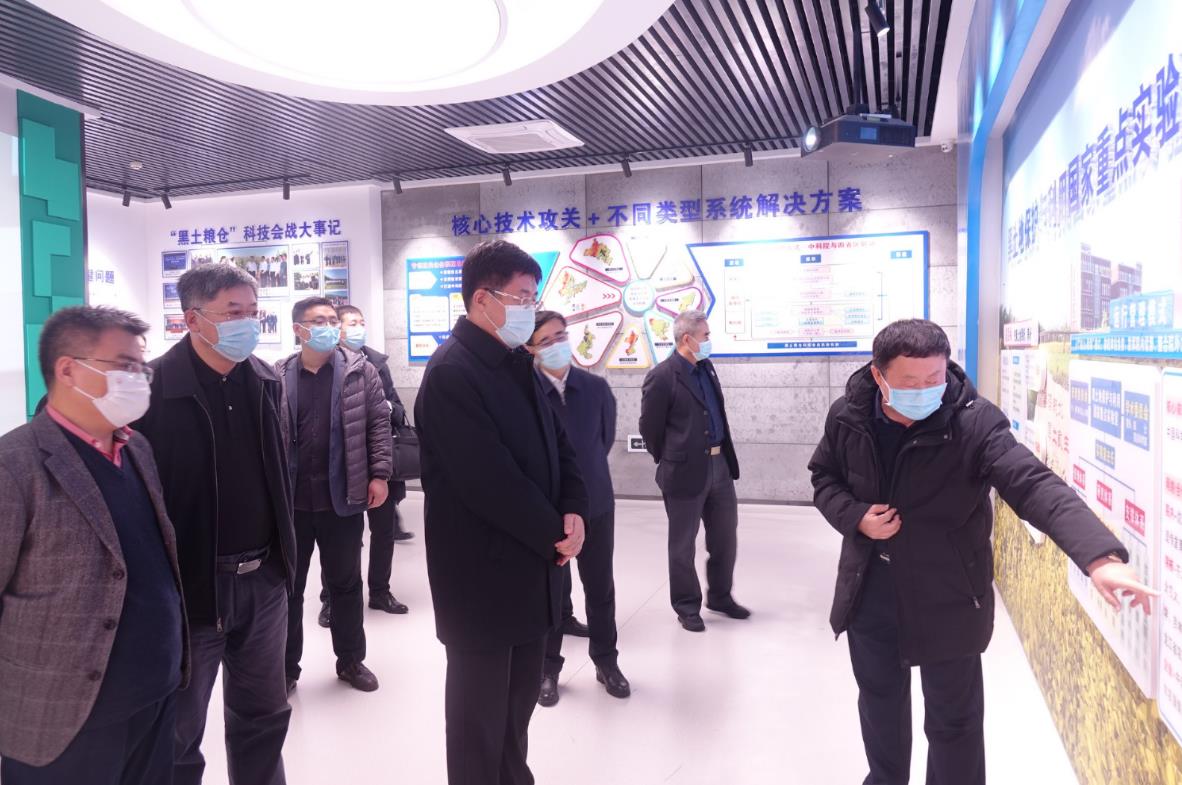 在“黑土糧倉”科技會戰指揮中心,東北地理所所長姜明介紹了“黑土糧倉”科技會戰產生背景、組織框架、核心技術攻關和區域適宜性模式示范等內容,并現場演示了科技會戰信息化指揮平臺系統。