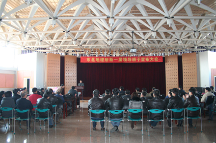 2010年4月23日,在東北地理所召開了新一屆領(lǐng)導(dǎo)班子宣布大會。中國科學(xué)院人事教育局領(lǐng)導(dǎo)干部處陳光處長、中國科學(xué)院長春分院王利祥院長、甘建國書記、李冰副院長、組織人事處于學(xué)峰處長等出席了大會。