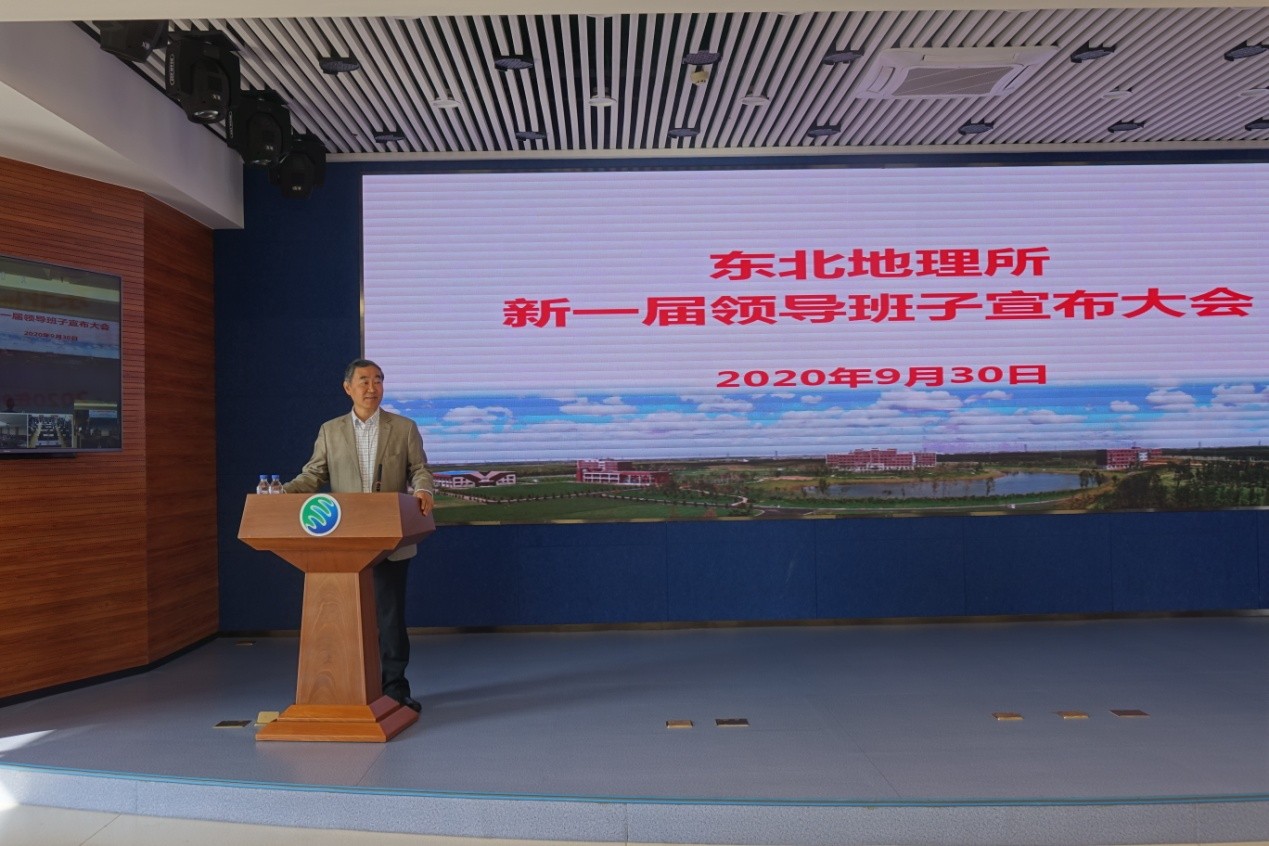 2020年9月30日,中國科學院東北地理與農業生態研究所召開了新一屆領導班子宣布大會。中國科學院長春分院分黨組書記、副院長馬七軍,院長甘建國,副院長劉曉冰,組織人事處處長彥飛,東北地理所領導班子成員、院士、黨委委員、紀委委員、管理部門正副職、實驗室(中心)正副主任、黨支部(黨總支)書記、正高級專業技術人員、副高級專業技術人員、管理部門全體人員、工會代表、離退休職工代表、研究生代表等170余人參加本次會議。會議由馬七軍主持。
