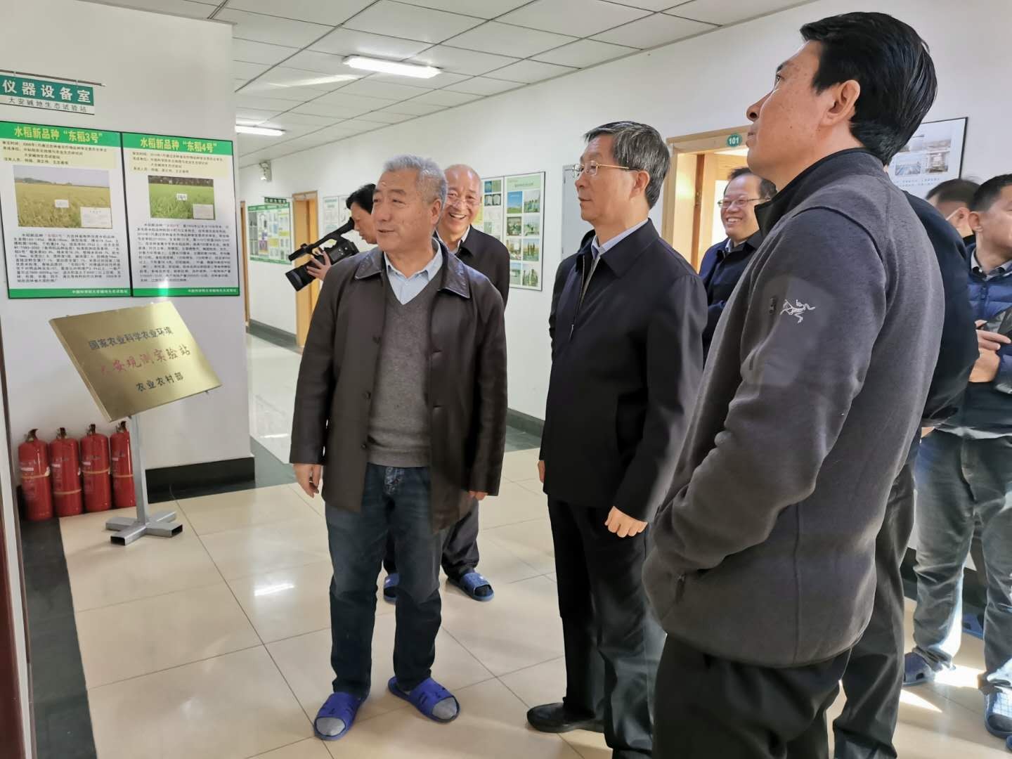 曹衛星一行首先聽取了梁正偉對大安站建站以來取得的重要進展和亮點科研成果的匯報,然后參觀了大安站基地實驗室和科研成果展、勞模創新工作室。并到田間先后考察了羊草種苗培育與羊草植被恢復試驗區,水稻品種耐鹽堿精密梯度試驗區,水稻種質資源和育種品比試驗圃等。曹衛星對大安站多年來取得的成果給予了高度評價,對鹽堿地改良,以及如何利用鹽堿地發展優質草地畜牧業經濟,促進吉林社會經濟發展提出了許多寶貴建議,并祝愿大安站工作再接再厲、不斷取得新成果。
