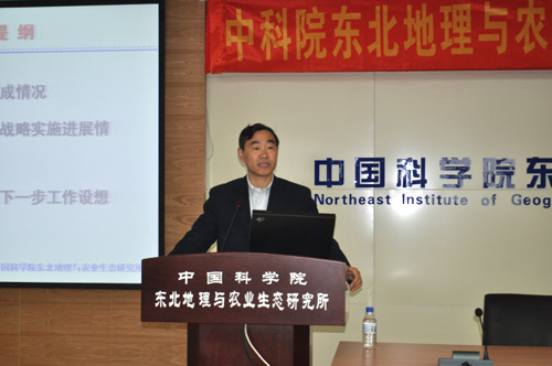 何興元所長代表所領導班子從所長任期目標及工作進展、研究所“一二四”發展戰略實施進展、干部選拔任用情況等方面做了述職報告。長春分院姜守忠處長代表審計組對屆中考核審計結果進行了公告。最后,丁仲禮副院長做了重要講話,他對本屆所領導班子帶領全所職工在發展戰略研究、優秀人才引進及青年人才培養、科研項目爭取和成果產出等方面取得的成績以及研究所上升的發展態勢給予了充分肯定。丁仲禮副院長指出,研究所要創新戰略布局和發展思路,同時要著力創新文化建設、管理制度建設、評價體系建設和科研平臺建設,營造研究所更好更快發展的優良環境,并勉勵大家要凝聚信心、一步一個腳印、扎實推進研究所的進步。