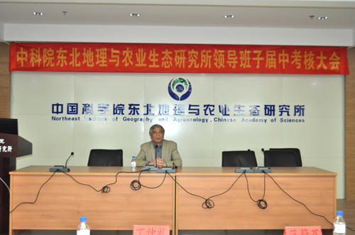 2012年11月6日,所領導班子屆中考核工作在長春園區舉行,由中科院副院長丁仲禮院士任考核組組長,資環局局長范蔚茗、院機關黨委常務副書記陳光、人教局領導干部處副處長張放、院辦公廳秘書處沈偉,以及長春分院黨組書記甘建國、副院長李冰、組織人事處處長于學鋒、組織人事處尚陽共同組成了考核組。考核大會由甘建國書記主持。