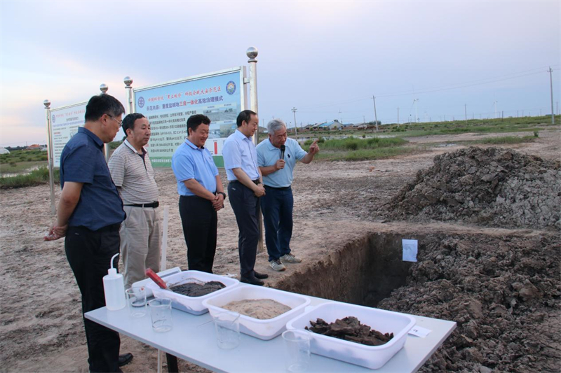慰問調(diào)研期間,李和風(fēng)一行考察了大安堿地生態(tài)試驗站及“黑土糧倉”科技會戰(zhàn)大安示范區(qū)示范田,大安堿地生態(tài)試驗站站長梁正偉研究員詳細(xì)介紹基本情況與工作進(jìn)展。