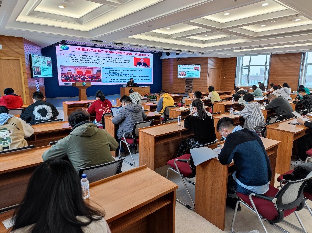 根據(jù)東北地理所黨委學(xué)習(xí)宣傳貫徹黨的二十大精神工作方案要求,研究生黨總支、所團(tuán)委于2022年11月25日上午組織開(kāi)展黨委委員講黨課活動(dòng),根據(jù)疫情防控相關(guān)規(guī)定,活動(dòng)以線下+線上相結(jié)合的方式進(jìn)行。本次活動(dòng)邀請(qǐng)到所黨委委員、黨委辦公室主任李穎同志為全體研究生黨員、團(tuán)員及群眾作題為《學(xué)習(xí)貫徹黨的二十大精神,爭(zhēng)做新時(shí)代好青年》的專題報(bào)告,長(zhǎng)春園區(qū)研究生黨員、團(tuán)員和群眾150余人參會(huì),所團(tuán)委副書(shū)記、研究生第一黨支部書(shū)記李盟同志主持會(huì)議。