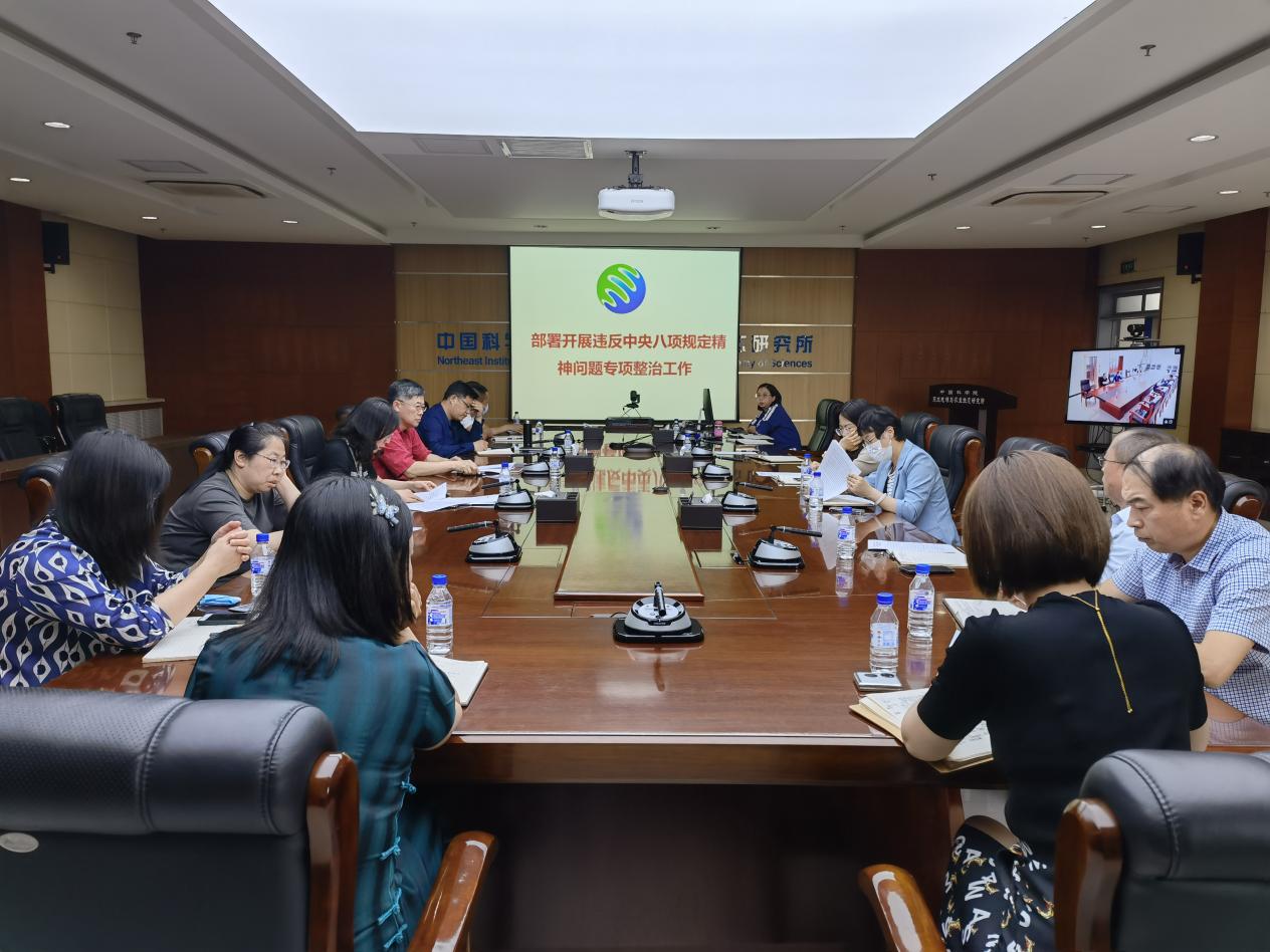 會議傳達了《中國科學院黨的建設工作領導小組辦公室關于開展違反中央八項規定精神問題專項整治的通知》要求,根據《中國科學院東北地理與農業生態研究所關于開展違反中央八項規定精神問題專項整治工作方案》部署了相關工作。
